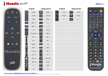 This remote control fully replaces your Polk (RE9641-1) and offers all the functions of the original.