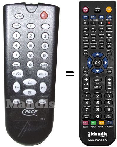 Remote control to replace the original remote 9162002 (RC17) and all its functions.