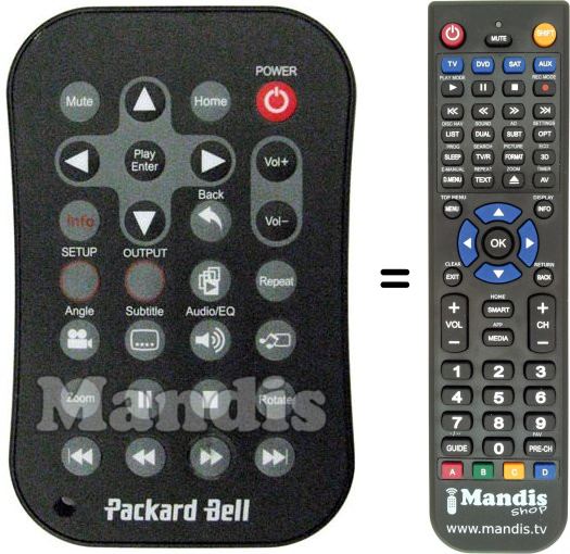 Below, we will show you the correspondence between each button on the original remote control and the button that performs the same function on the replacement remote control. In some cases, you may need to press the SHIFT key before pressing another button to perform certain actions. These additional functions are often not widely used and are included to facilitate understanding of the replacement remote control, or because the original remote control has more buttons than its equivalent.
