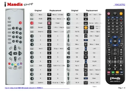 This remote control fully replaces your Y96187R2 (GNJ0147) and offers all the functions of the original.