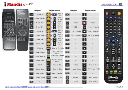 Below, we will show you the correspondence between each button on the original remote control and the button that performs the same function on the replacement remote control. In some cases, you may need to press the SHIFT key before pressing another button to perform certain actions. These additional functions are often not widely used and are included to facilitate understanding of the replacement remote control, or because the original remote control has more buttons than its equivalent.