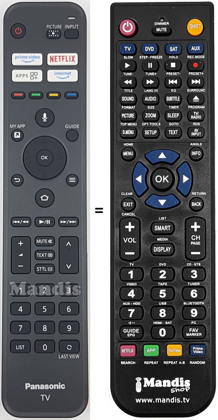 replacement remote control RC44255 (30120852) used for televisions for the brand Panasonic.