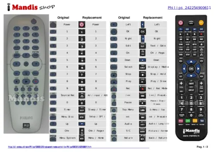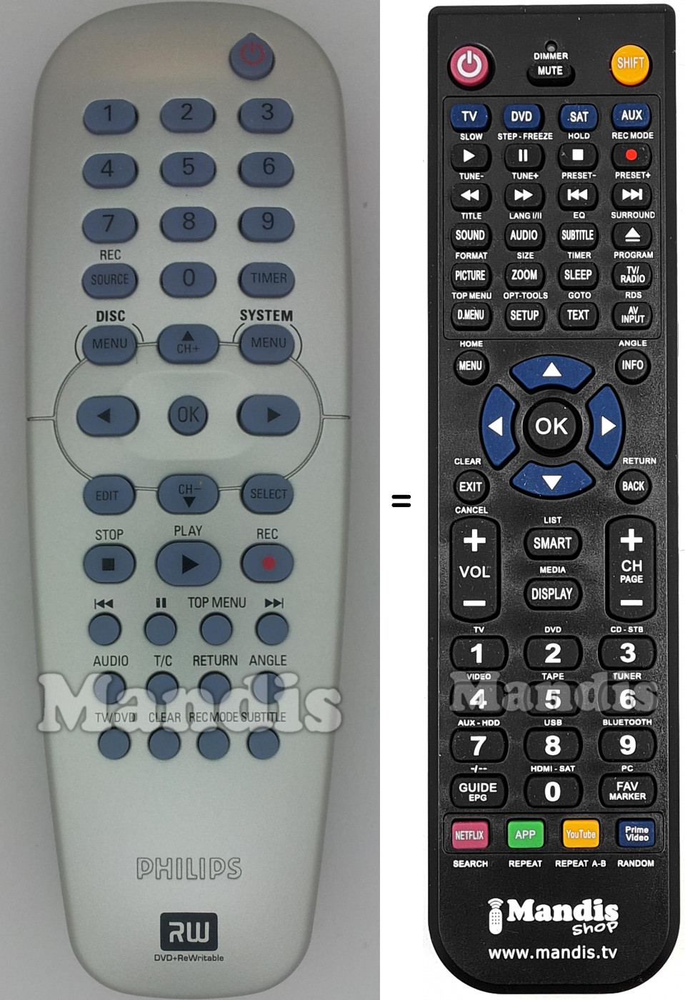 Below, we will show you the correspondence between each button on the original remote control and the button that performs the same function on the replacement remote control. In some cases, you may need to press the SHIFT key before pressing another button to perform certain actions. These additional functions are often not widely used and are included to facilitate understanding of the replacement remote control, or because the original remote control has more buttons than its equivalent.