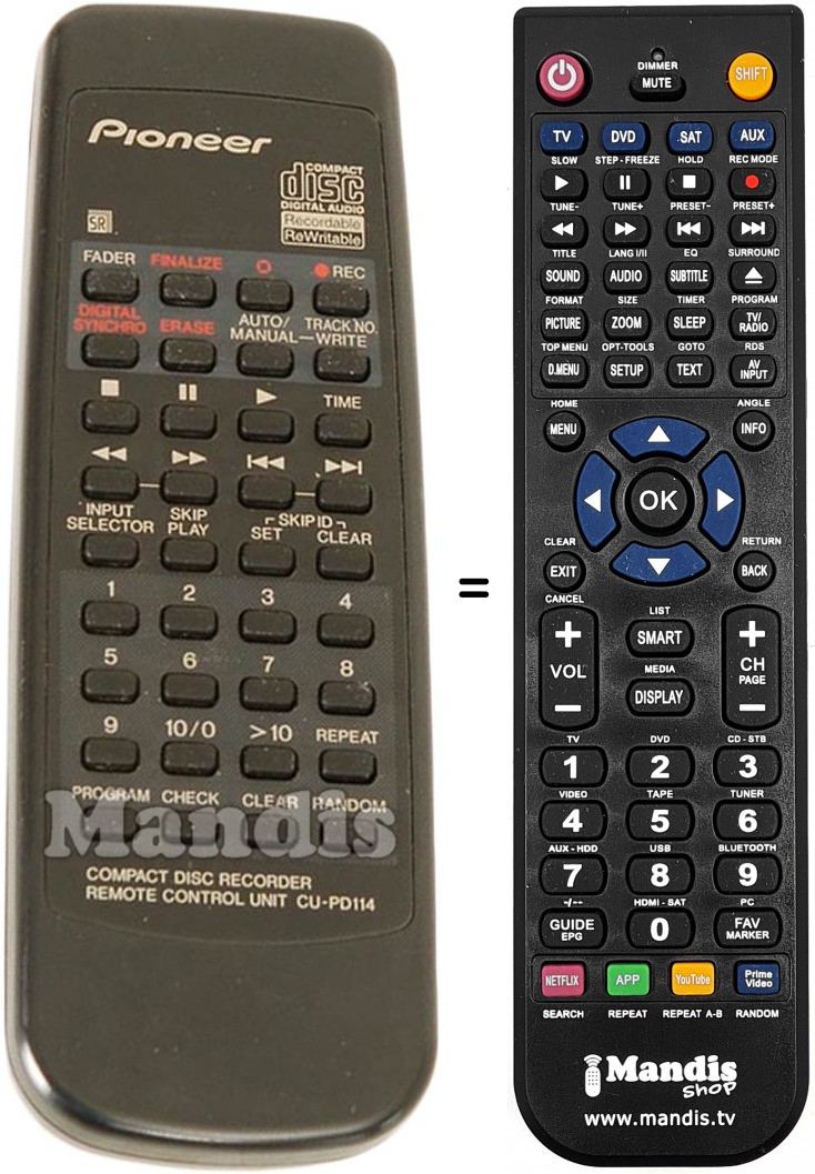 Remote control for PIONEER CU-PD114