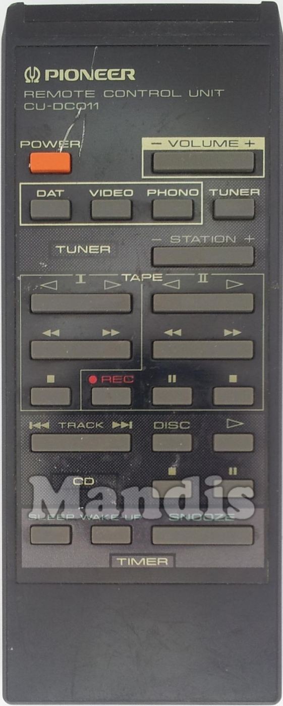 original remote control CU-DC011 used for hi-fi system for the brand Pioneer. This is an original remote control.