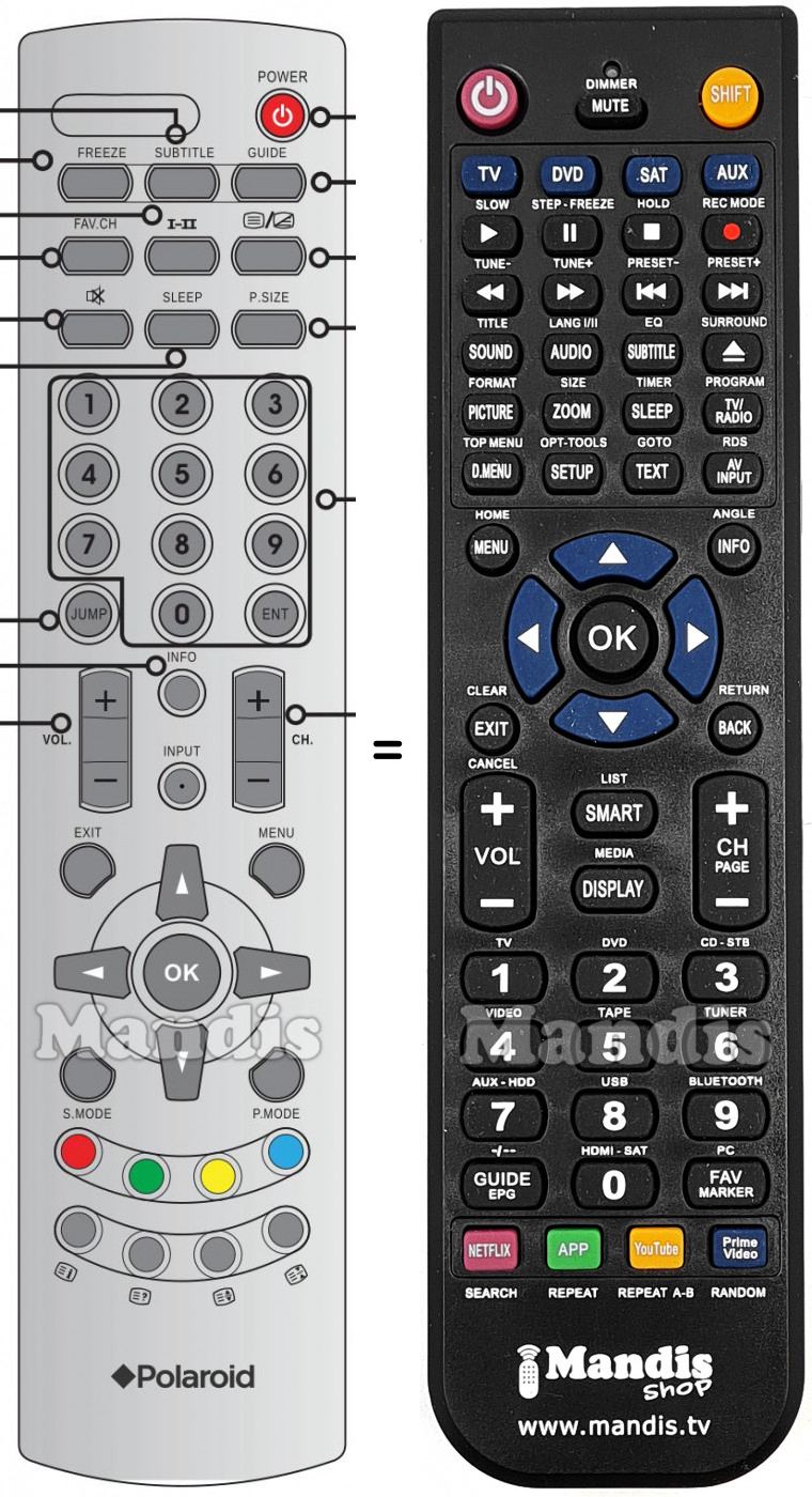This remote control fully replaces your Polaroid001 and offers all the functions of the original.