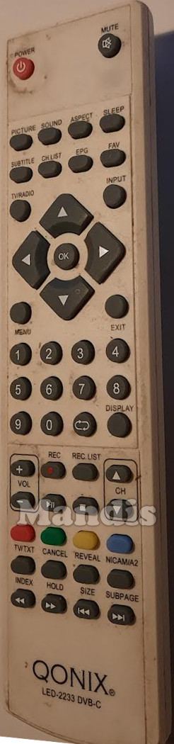 original remote control LED-2233DVB-C used for televisions for the brand QONIX. This is an original remote control.