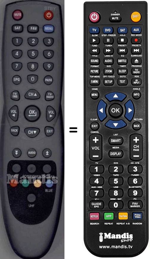Remote control to replace the original and all its functions.