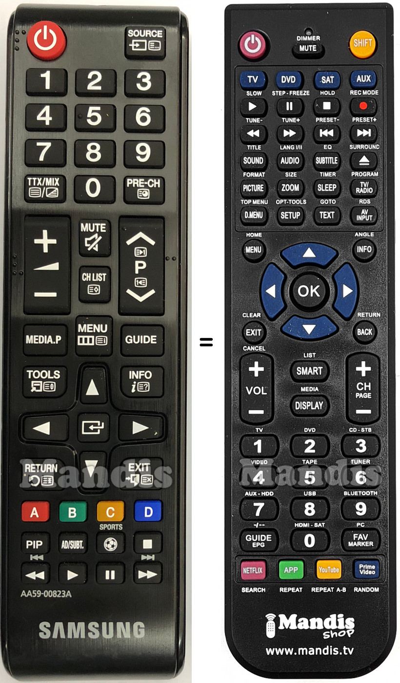 This remote control fully replaces your TM1240A (AA59-00823A) and offers all the functions of the original.