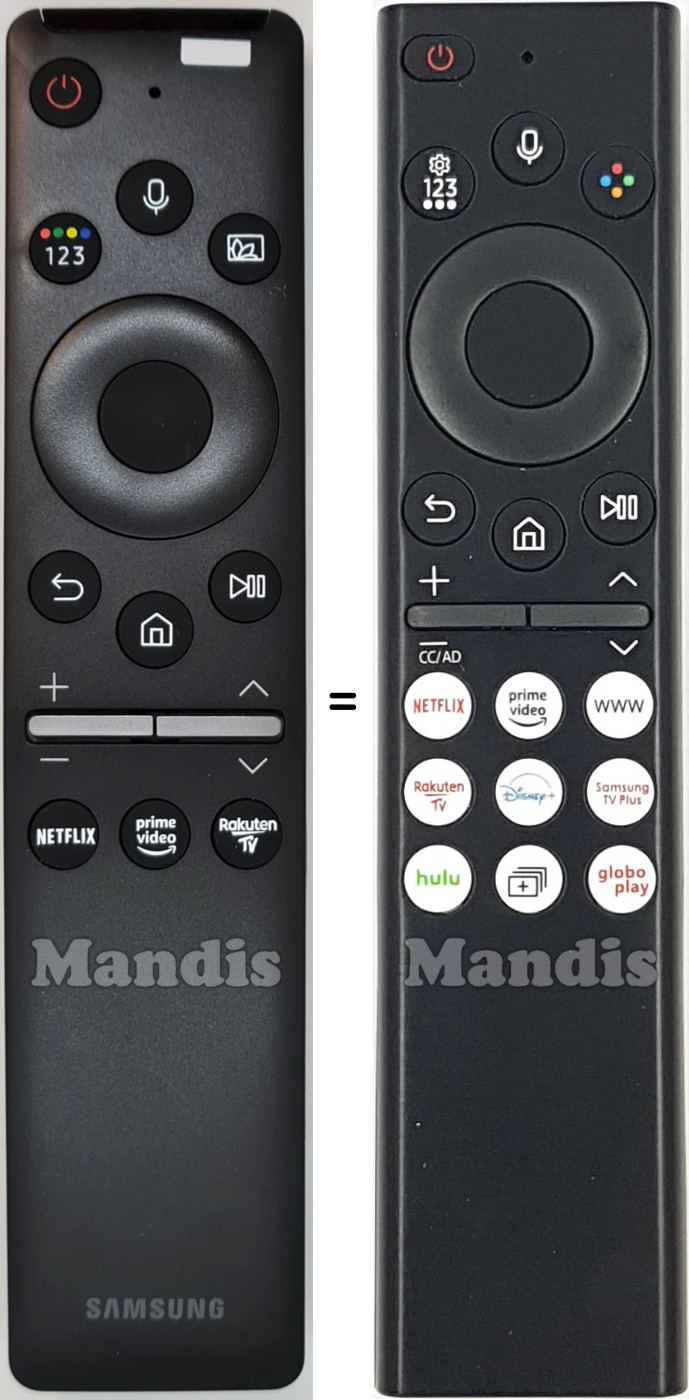 Modernize your Samsung Smart TV with this elegant and functional remote control. It offers complete control and comfort thanks to its voice technology and ergonomic design. It works perfectly with all Samsung TVs with Bluetooth, ensuring a reliable and powerful connection. Featuring direct access buttons for your favorite apps like Netflix and Prime Video.