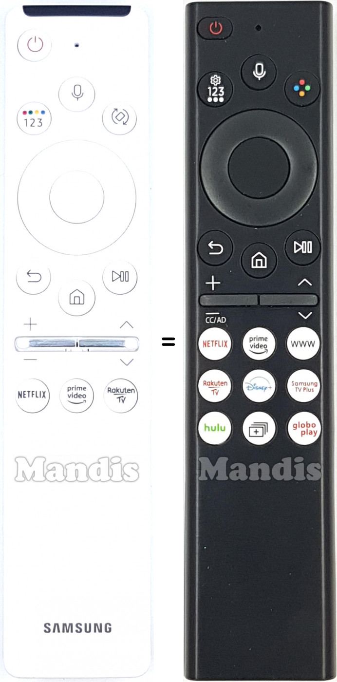 Modernize your Samsung Smart TV with this elegant and functional remote control. It offers complete control and comfort thanks to its voice technology and ergonomic design. It works perfectly with all Samsung TVs with Bluetooth, ensuring a reliable and powerful connection. Featuring direct access buttons for your favorite apps like Netflix and Prime Video.