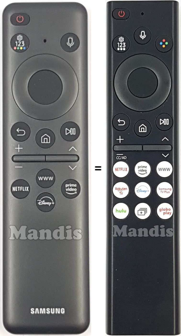 Modernize your Samsung Smart TV with this elegant and functional remote control. It offers complete control and comfort thanks to its voice technology and ergonomic design. It works perfectly with all Samsung TVs with Bluetooth, ensuring a reliable and powerful connection. Featuring direct access buttons for your favorite apps like Netflix and Prime Video.
