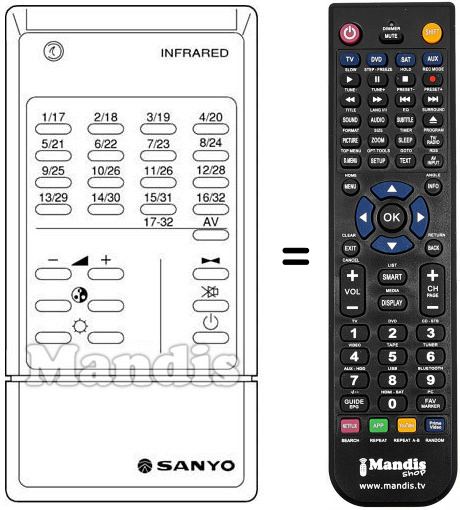 Remote control to replace the original and all its functions.