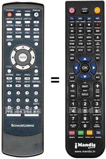 Below, we will show you the correspondence between each button on the original remote control and the button that performs the same function on the replacement remote control. In some cases, you may need to press the SHIFT key before pressing another button to perform certain actions. These additional functions are often not widely used and are included to facilitate understanding of the replacement remote control, or because the original remote control has more buttons than its equivalent.