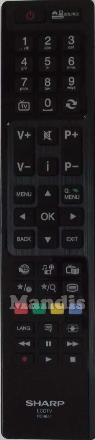 original remote control RC 4847 (23100151) used for televisions for the brand Sharp. This is an original remote control.