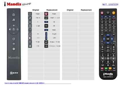 We offer a replacement remote control that completely replaces your original in all its functions. This isn't a universal remote, but an exact copy with all the same buttons and functionalities.
