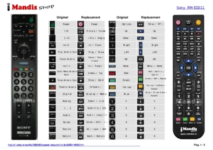 This remote control fully replaces your RM-ED011 (148077811) and offers all the functions of the original.