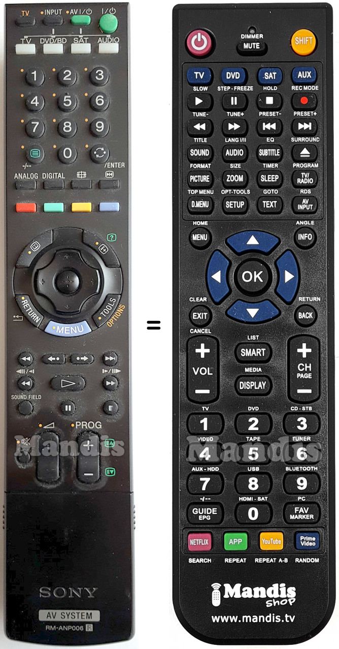 This remote control replaces most of the functions of your RM-ANP006. It is not a universal remote control, but a copy with most of the buttons and functions of your original.