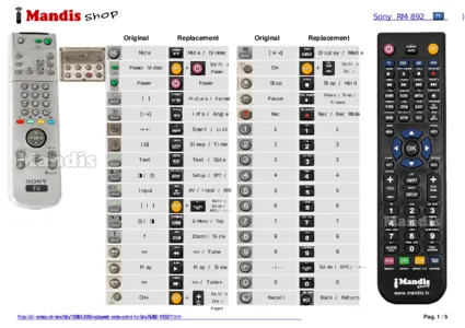 This remote control fully replaces your RM-892 (141857211) and offers all the functions of the original.