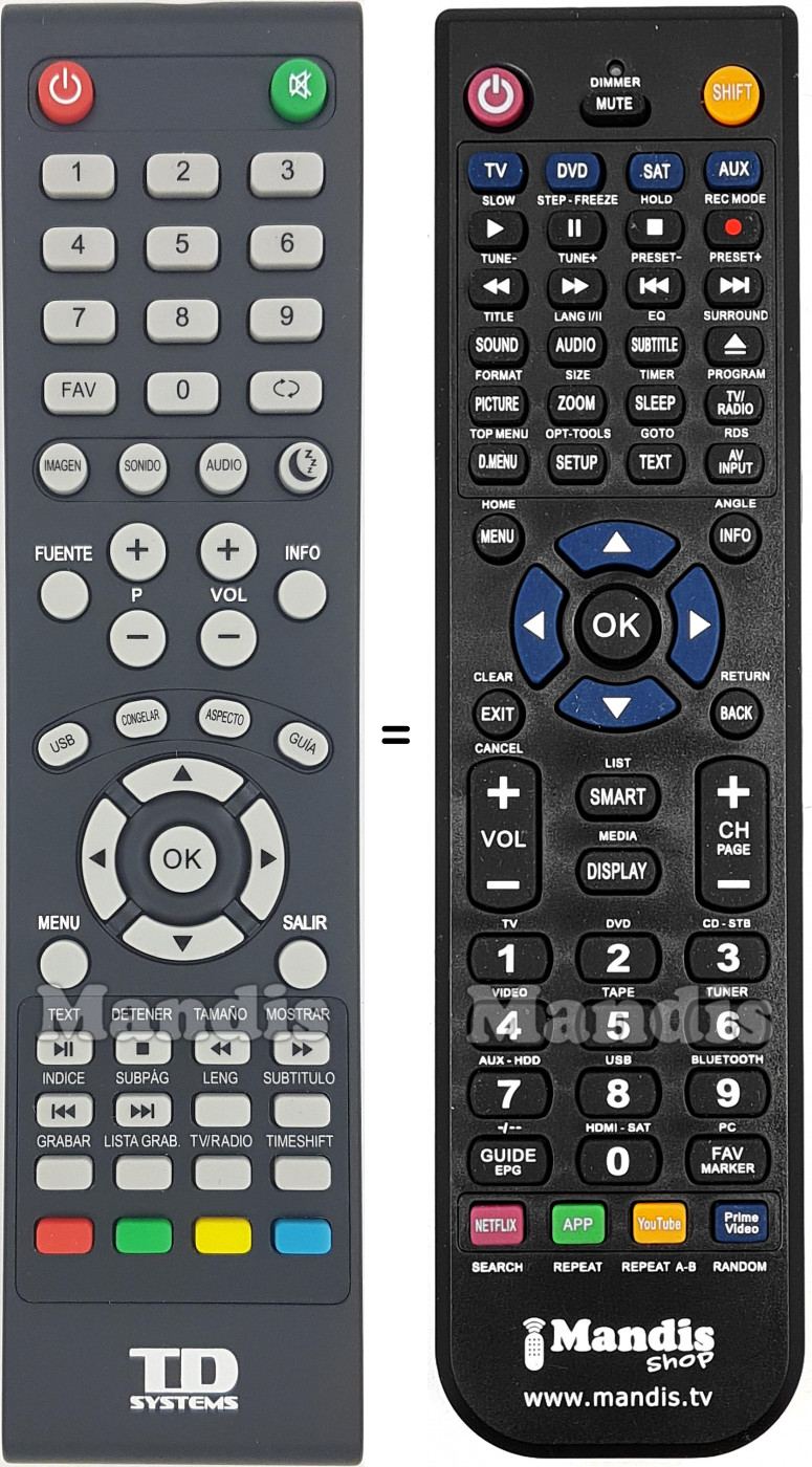 Below, we will show you the correspondence between each button on the original remote control and the button that performs the same function on the replacement remote control. In some cases, you may need to press the SHIFT key before pressing another button to perform certain actions. These additional functions are often not widely used and are included to facilitate understanding of the replacement remote control, or because the original remote control has more buttons than its equivalent.