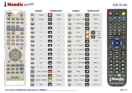 This remote control fully replaces your RC-882 and offers all the functions of the original.