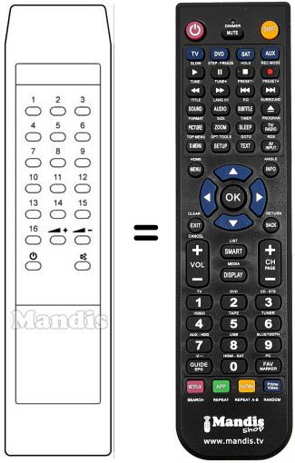 Remote control to replace the original and all its functions.