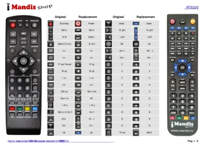 Below, we will show you the correspondence between each button on the original remote control and the button that performs the same function on the replacement remote control. In some cases, you may need to press the SHIFT key before pressing another button to perform certain actions. These additional functions are often not widely used and are included to facilitate understanding of the replacement remote control, or because the original remote control has more buttons than its equivalent.
