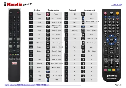 This remote control fully replaces your RC802N (04TCLTEL0252) and offers all the functions of the original.