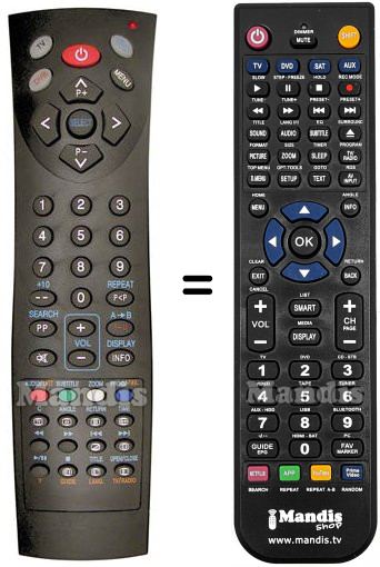 Below, we will show you the correspondence between each button on the original remote control and the button that performs the same function on the replacement remote control. In some cases, you may need to press the SHIFT key before pressing another button to perform certain actions. These additional functions are often not widely used and are included to facilitate understanding of the replacement remote control, or because the original remote control has more buttons than its equivalent.