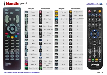 A document is included to help you use the new remote control easily, showing the button correspondence.