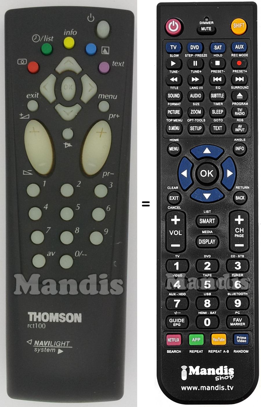 Below, we will show you the correspondence between each button on the original remote control and the button that performs the same function on the replacement remote control. In some cases, you may need to press the SHIFT key before pressing another button to perform certain actions. These additional functions are often not widely used and are included to facilitate understanding of the replacement remote control, or because the original remote control has more buttons than its equivalent.