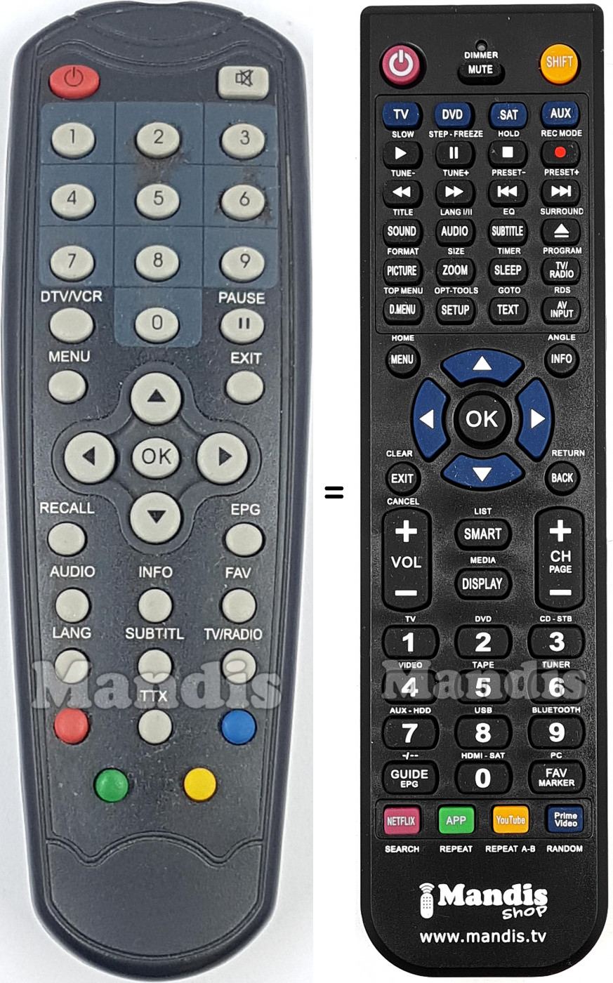 We offer a replacement remote control that completely replaces your original in all its functions. This isn't a universal remote, but an exact copy with all the same buttons and functionalities.