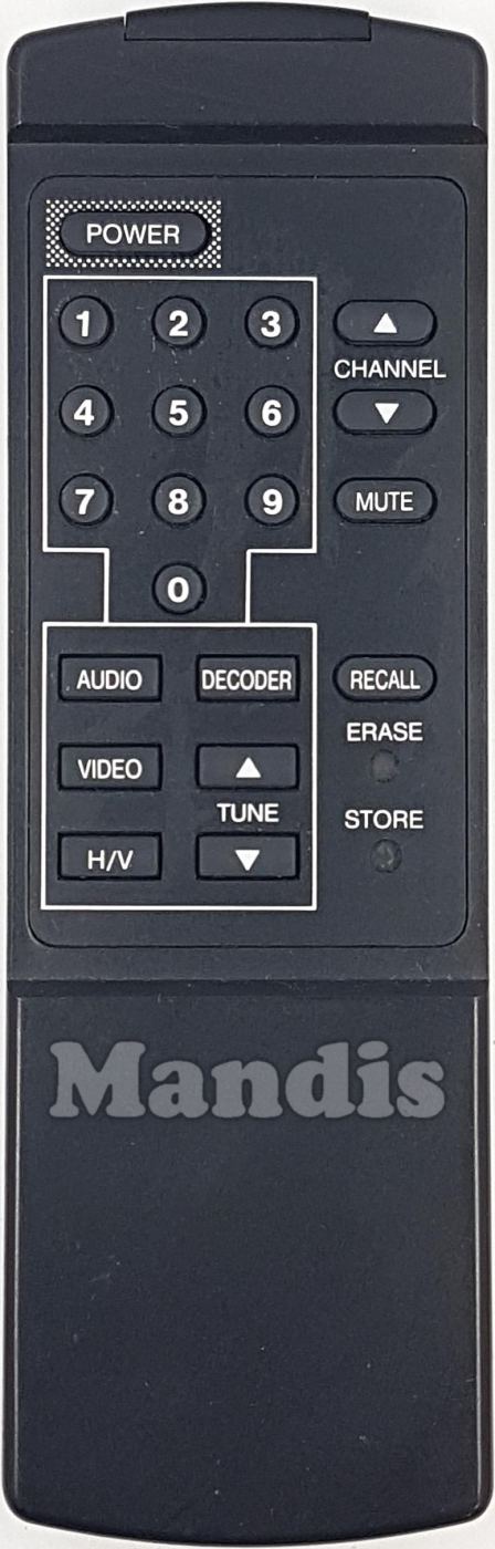 Power, 1, 2, 3, 4, 5, 6, 7, 8, 9, 0, Channel+, Channel-, Mute, Audio, Decoder, Video, H/V, Tune+, Tune-, Recall