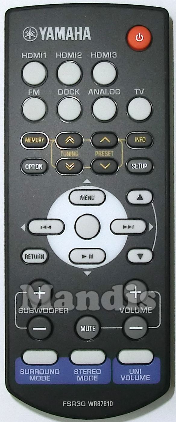 Replacement remote controls that replace in all its functions the remote YAMAHA FSR30 (WR878100):